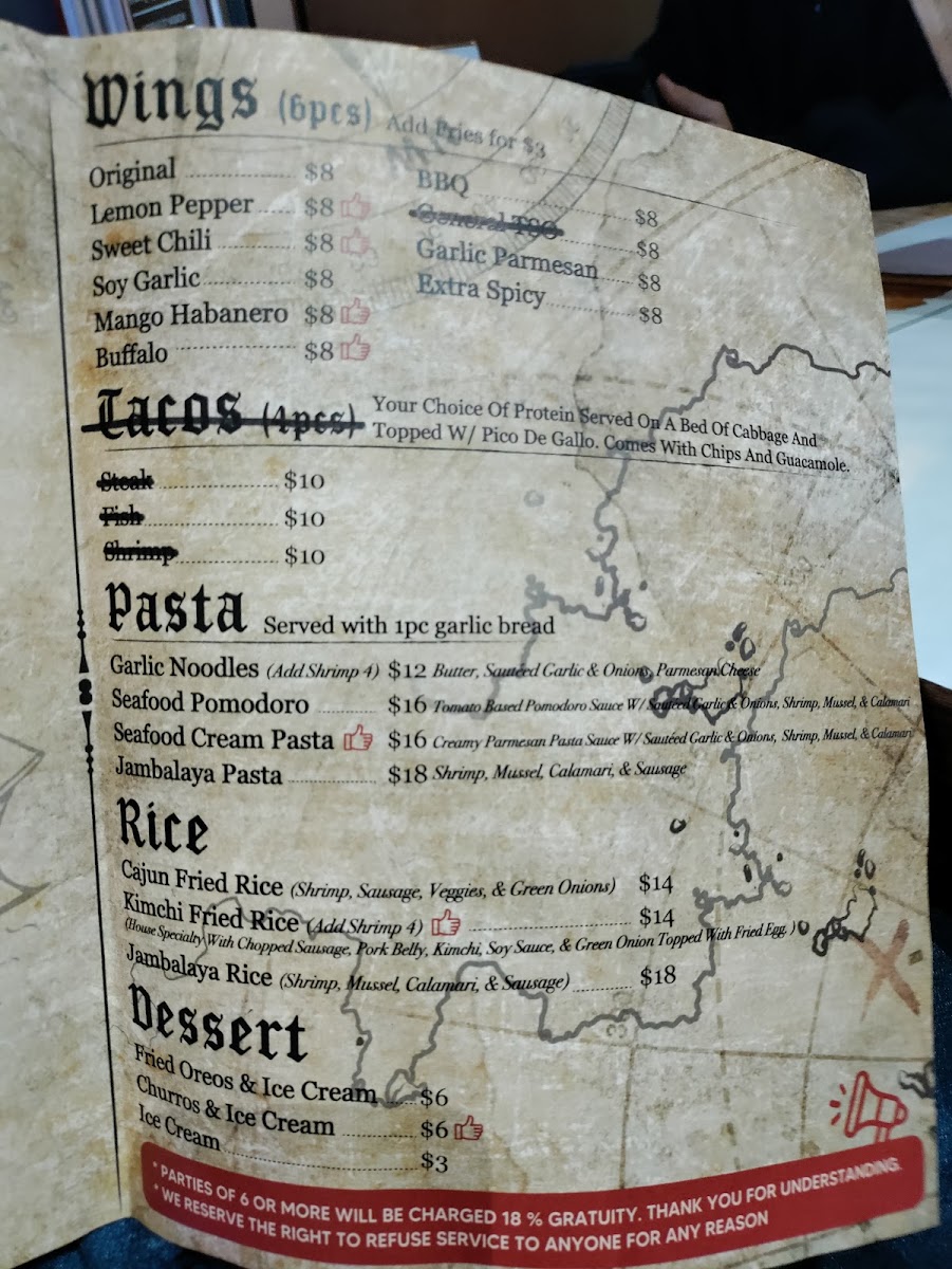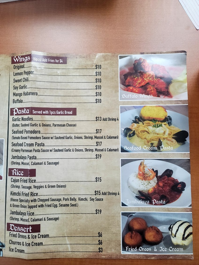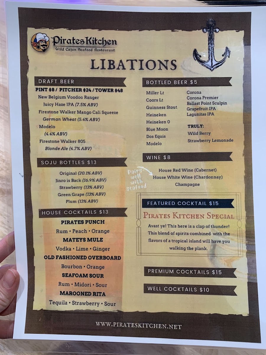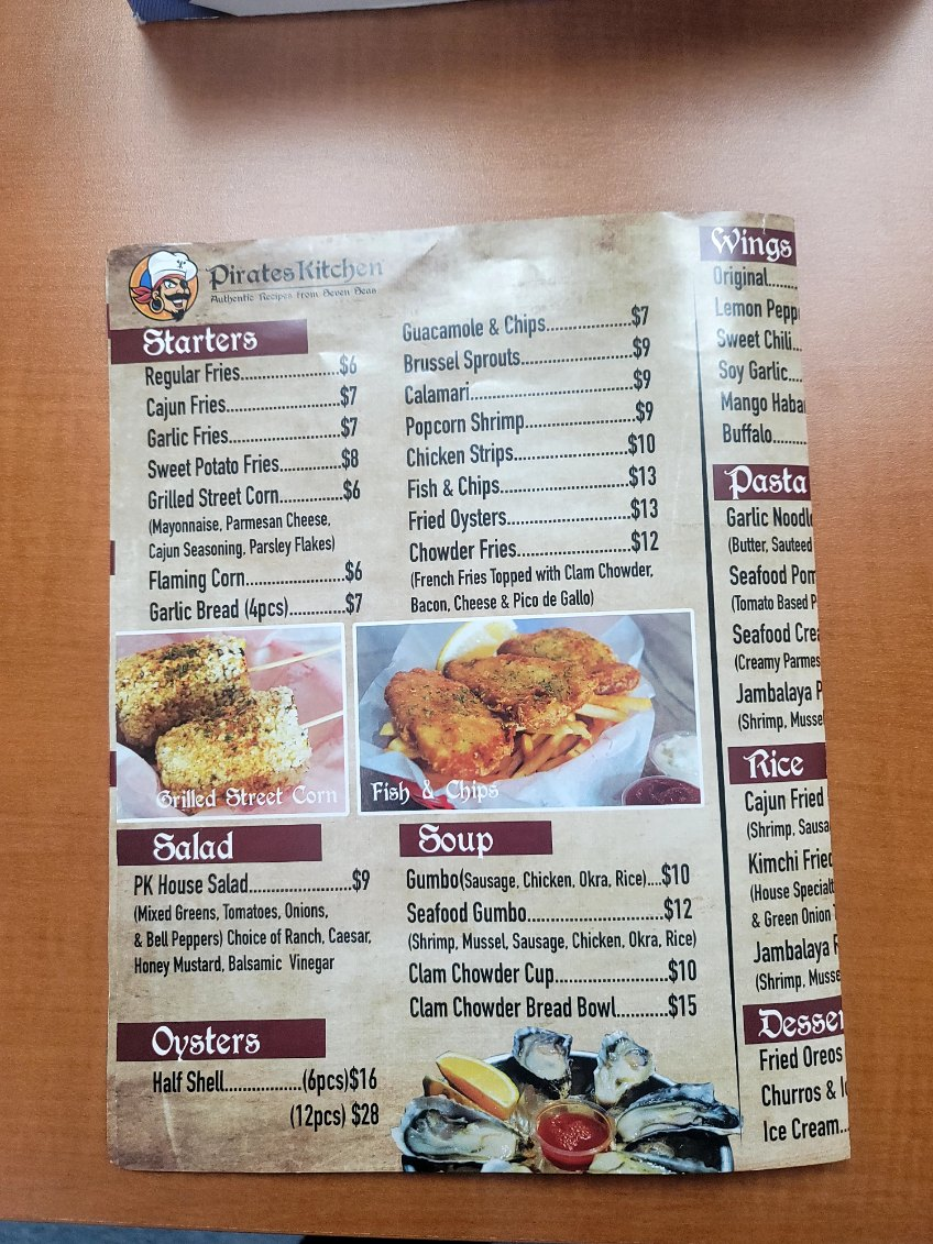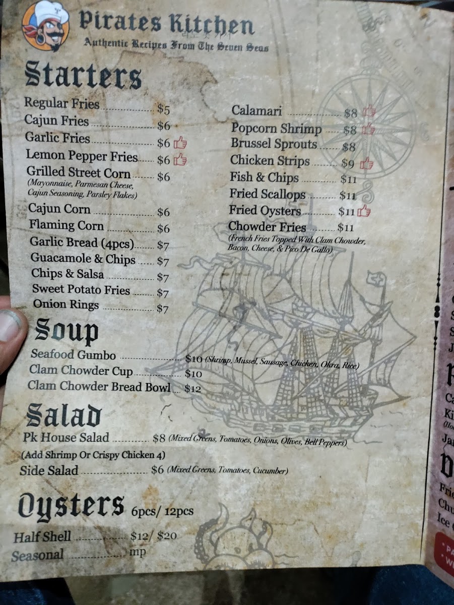 To round out the experience, dessert options like Churros & Ice Cream, Ice Cream, and Fried Oreos & Ice Cream deliver a playful, indulgent finish. Overall, Pirates Kitchen La Habra’s menu feels thoughtfully curated, diverse without being overwhelming, and consistent in theme-making it a memorable spot for anyone craving comforting seafood dishes with a fun, pirate-inspired twist.
